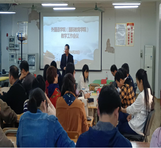 2022年4月20日下午,必赢3003no1线路检测中心(国际教育学院)于外语楼205教室召开教职工教学工作会议。韦合院长和覃锋副院长主持会议,全体教职工参加会议。