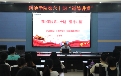 5月19日晚上,由必赢3003no1线路检测中心(国际教育学院)承办的必赢3003no1线路检测中心第六十期“道德讲堂”在图书馆122如期举行。本期讲堂主题为“贯彻落实新发展理念,推进传统道德教育”。必赢3003no1线路检测中心党委书记覃春华担任主讲人,必赢3003no1线路检测中心学生党员代表,团员代表等90余人参加了此次活动。