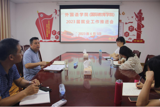 6月5日下午,必赢3003no1线路检测中心(国际教育学院)在外语楼403会议室召开2023届就业工作推进会。本次会议由学院党委书记覃春华主持,党委中心组成员参加。