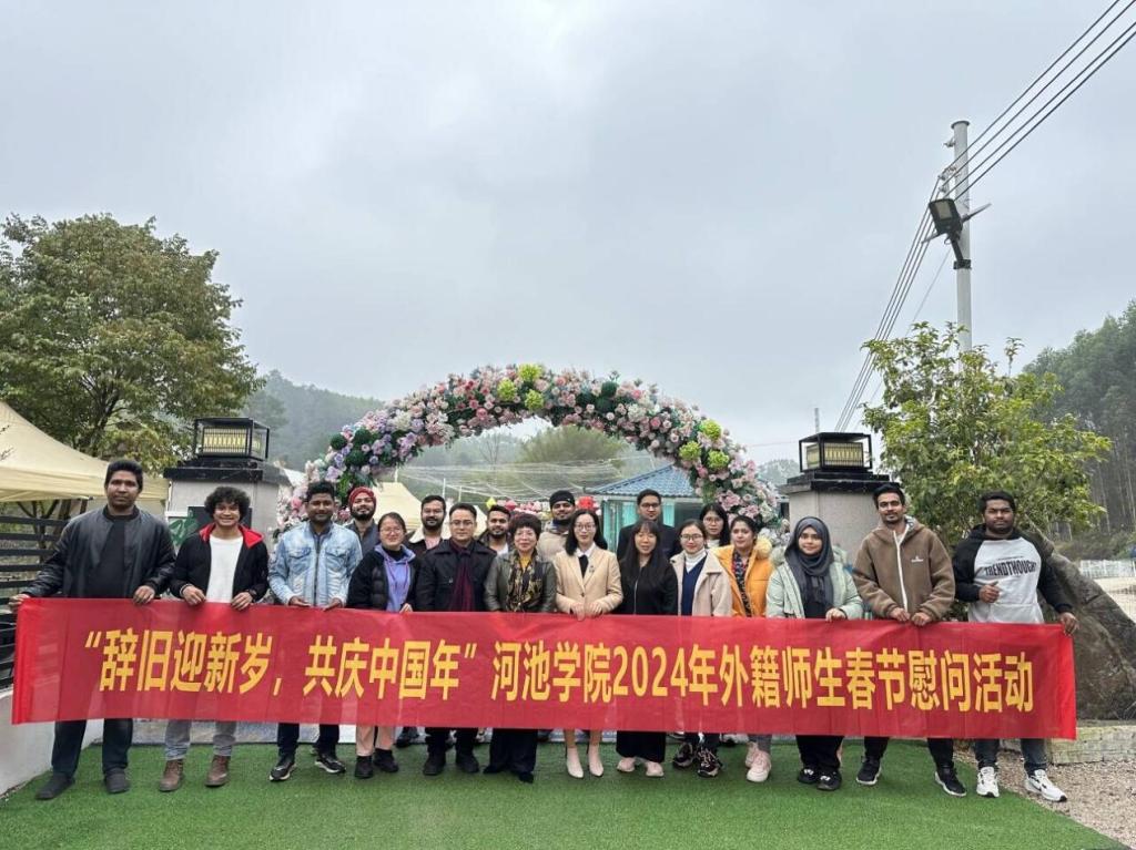 辞旧迎新岁,共庆中国年。2024年1月13日,必赢3003no1线路检测中心在宜州欢乐湾开展2024年外籍师生春节慰问活动,为必赢3003no1线路检测中心外籍教师和国际学生送去新春祝福。必赢3003no1线路检测中心(国际教育学院)院长韦丽秋和办公室全体教师出席此次活动。