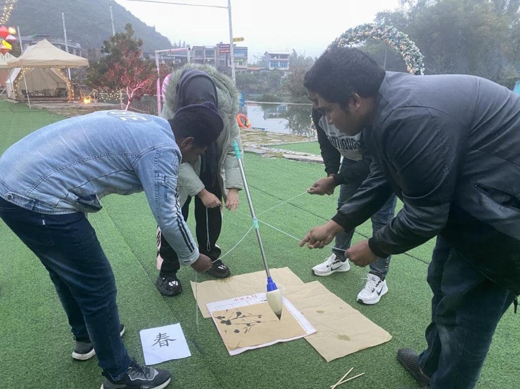 弘扬中华传统,走进中国春节。本次活动组织了解手链、齐心协力写“春”字和筷运乒乓球等一系列年味浓浓的团体活动,增强了团队凝聚力,拉进外籍师生之间的距离。活动结束后,韦丽秋院长表示,希望通过此次活动,能够让外籍师生更深入地了解和体验中国传统文化,尤其是在春节期间,感受到中国人民的热情和友好。此次春节慰问活动得到了外籍师生的一致好评。他们纷纷表示,此次活动让他们感受到了中国春节的温馨和欢乐,也更加深入地了解了中国文化。他们感谢学校对他们的大力支持和关心,表示将在新的一年里,以更加饱满的热情投入到工作和学习中,奋楫争先,再创佳绩。