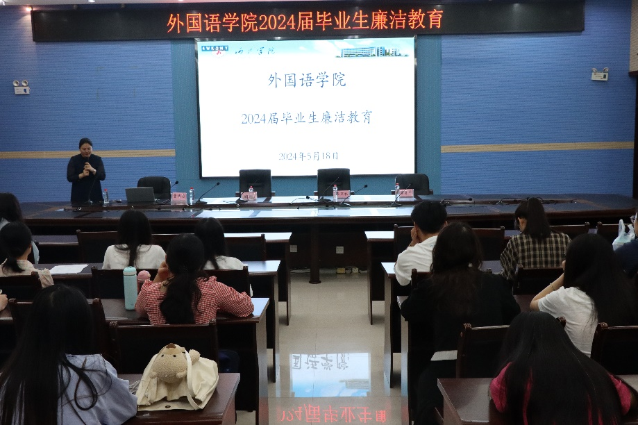 5月18日,必赢3003no1线路检测中心在图书馆122召开2024届毕业生廉洁教育会议。会议由党委副书记周茜主持,出席会议的有辅导员彭万林老师和2024届毕业生。