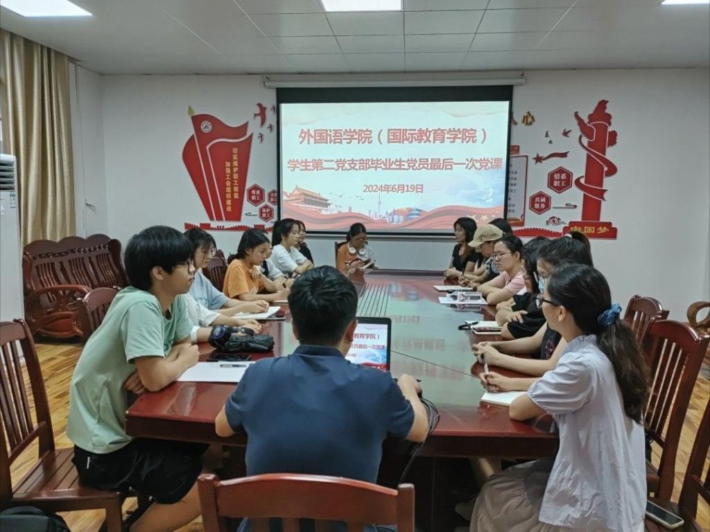 2024年6月19日,我支部于外语楼403召开毕业生党员离校前最后一次党课,支部书记王勇亮主持本次党课学习。