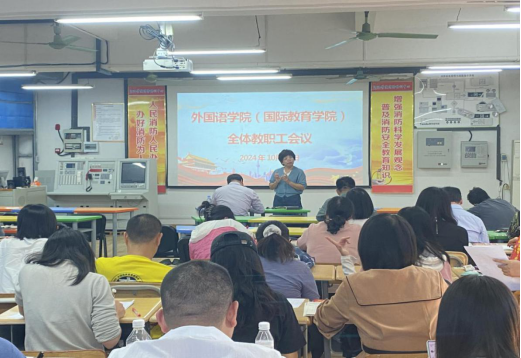 10月23日下午,必赢3003no1线路检测中心在外语楼205召开全院教职工大会,会议由学院副院长钟伟轩主持,全院教职工共同参加。