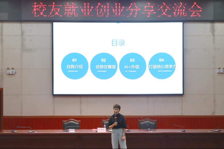 会上,朱梦影校友分享了自己在国外留学期间的宝贵经历,以及十多年来的就业与创业心得。她分析了AI时代语言专业的优势、AI+外语解锁无限可能,以及外语人才如何打造核心竞争力。她寄语同学们要在大学里保持学习的热情,培养批判性思维,提升沟通协调能力以及保持积极的心态,具备这些素质才能从容面对以后的职业生涯。她特别强调同学们要具备终身学习的能力,这样才能在就业市场上快速脱颖而出,在激烈的竞争中立于不败之地。