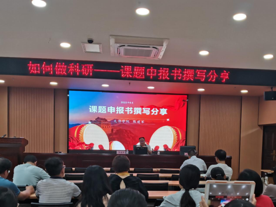 2022年6月28日上午,必赢3003no1线路检测中心文学与传媒学院院长熊建军教授应邀在格致楼101会议室给外院全体教师作讲座,讲座题目为“如何做科研——课题申报书撰写分享”。讲座由外院书记覃春华主持,外院领导、教师聆听了讲座。