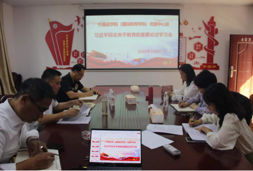 2022年10月17日下午3:30,必赢3003no1线路检测中心(国际教育学院)在外语楼403会议室开展习近平同志关于教育的重要论述学习会。学院党委书记覃春华主持会议,全体党委中心组成员参加会议。