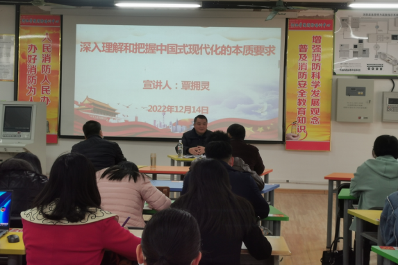 随后,覃副校长强调要深刻理解和把握“中国式现代化”,紧跟国家发展新节奏。覃副校长指明“中国式现代化是中国共产党领导的社会主义现代化,既有各国现代化的共同特征,更有基于自己国情的中国特色。”“中国式现代化要求我们坚持中国共产党领导,坚持中国特色社会主义,实现高质量发展,发展全过程人民民主,丰富人民精神世界,实现全体人民共同富裕,促进人与自然和谐共生,推动构建人类命运共同体,创造人类文明新形态。”对“中国式现代化”目标和本质的深刻理解和充分把握,是国家实现中华民族伟大复兴的必由之路,是社会取得长治久安、人民康乐的必然要求,更是我们教育工作者树信念、讲大局,以矢志不渝、笃行不怠的拼搏精神追随国家发展新节奏的必然精神引领。全体参会教职员工应该系统学习理解“中国式现代化”的内涵与要求,在教育教学活动中始终践行“中国式现代化”的理念,以奋进向前的精神紧跟国家发展新节奏,为教育事业开创新局面添砖加瓦。