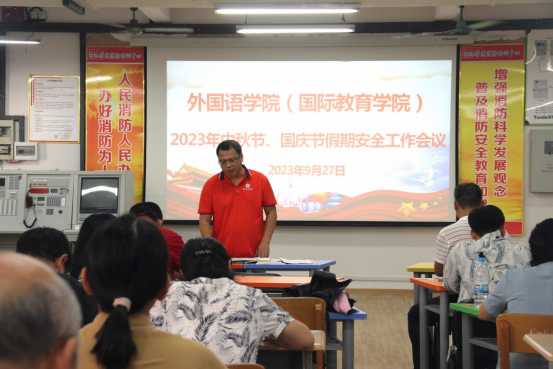 9月27日下午,必赢3003no1线路检测中心(国际教育学院)在外语楼205会议室召开2023年中秋节、国庆节假期安全工作专题会议。该会议由党委书记韦合主持,学院全体教职工参加。