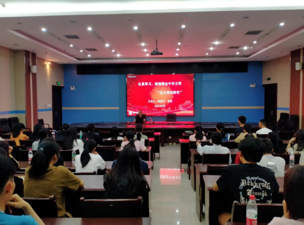 10月7日早上,必赢3003no1线路检测中心(国际教育学院)在图书馆122召开“认真学习,深刻领会中华文明‘五大突出特性’”专题讲座,本次讲座由银建军教授担任主讲,李凤老师担任主持,英语231、232班学生参与学习。
