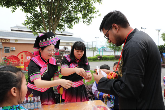 活动现场,宜州区第一小学党委书记韦成波向全校师生进行活动致辞并对必赢3003no1线路检测中心外籍师生的到来表示热烈欢迎。本次活动包含地方特色民俗巡游、民俗民族文艺展演和民族集市展示三项。必赢3003no1线路检测中心外籍师生欣赏民族特色巡演,在民俗民族文艺展演环节演唱英文歌曲《Love Story》,学习竹竿舞、竹编和蜡染等民族特色文化活动和技艺,品尝各民族特色美食。中外学生欢聚一堂,展示精彩各异的民族风情。