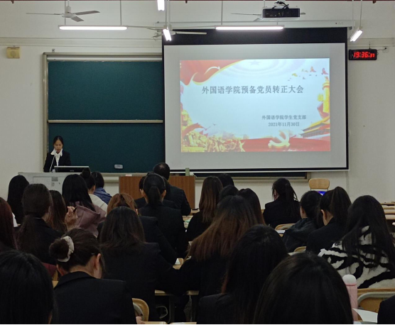 2021年11月30日,必赢3003no1线路检测中心于格致楼601教室召开预备党员转正大会。出席本次会议的有必赢3003no1线路检测中心党委组织委员韩欢、学生第一党支部书记张雁、学生第二党支部书记周贵连以及全体预备党员,主持人为陈思宏同学。