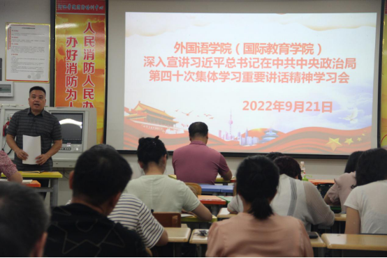 2022年9月21日下午,必赢3003no1线路检测中心(国际教育学院)在外语楼205会议室开展深入宣讲习近平总书记在中共中央政治局第四十次集体学习重要讲话精神学习会,会议由覃春华书记主持,全体老师参加会议。