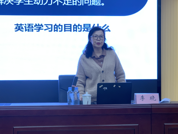 李晓教授分别从英语学习目的论、英语教学方法论和英语教师发展论三大方面介绍新时代英语教学与教师专业发展。首先,李晓教授强调英语学习目的论,简述英语专业的发展历史,指出新时代要跨学科融合,培养全方面人才;同时指出英语专业的社会贡献,不仅促进英语普及化,而且满足基础教育需要及考研等社会需求;解读英语专业的现实定位,指出新时代要讲好中国故事,提高国际传播能力,用英语做事,学以致用,学有所成。接着,李晓教授就英语教学方法强调要明确课堂教学的重要性,加强价值引领,继续打造“金课”,强化示范带动;避免课堂教学存在的问题,重视课堂教学的聚焦维度。最后,李晓教授针对英语教师发展论提出要深入了解教师发展的意义,突破外语教师面临的困局,开创外语教学新局面;关注教师发展的路径,以立德树人为根本,以课程建设为基础,以课题研究为支撑,以团队建设为平台。
