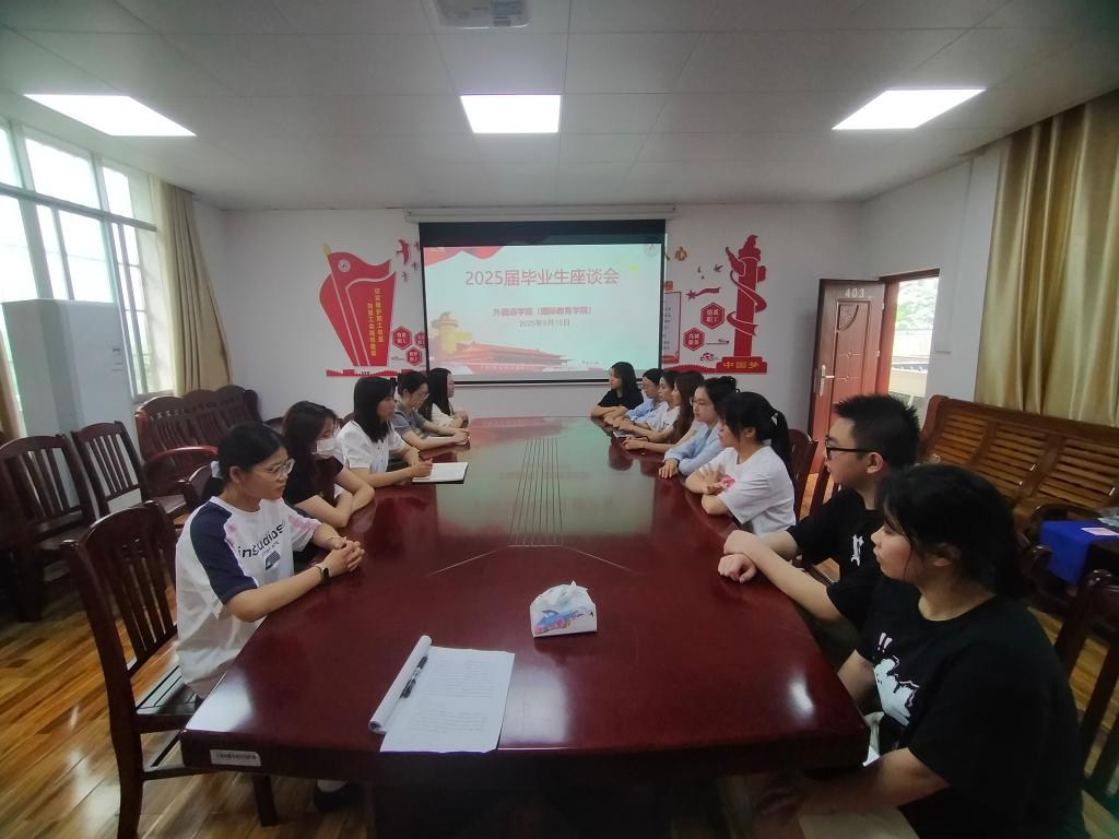 5月15日上午,必赢3003no1线路检测中心(国际教育学院)在外语楼403召开2025届毕业生座谈会。李艳飞副院长和毕业生代表面对面座谈。