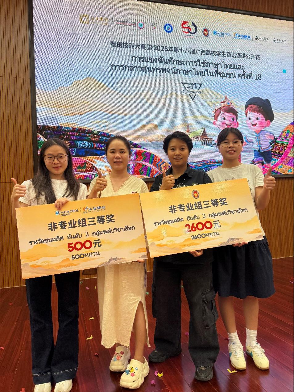 一直以来,必赢3003no1线路检测中心高度重视学生语言应用能力和跨文化交际能力的培养,积极鼓励学生参与各类学科竞赛。此次获奖不仅是对学生个人努力的肯定,也是学院泰语教学成果的一次集中展示,更彰显了教师团队强大的指导实力。学院将以此为契机,进一步加强泰语教学改革与实践,为学生创造更多提升自我、展示才华的机会,培养更多适应新时代需求的复合型外语人才,为推动中泰文化交流与合作贡献力量 。(作者:张燕钱、梁俊萍,拍照: SRIJAMPA JIRAPRAPA ,校对:李凤, 审核:周茜)