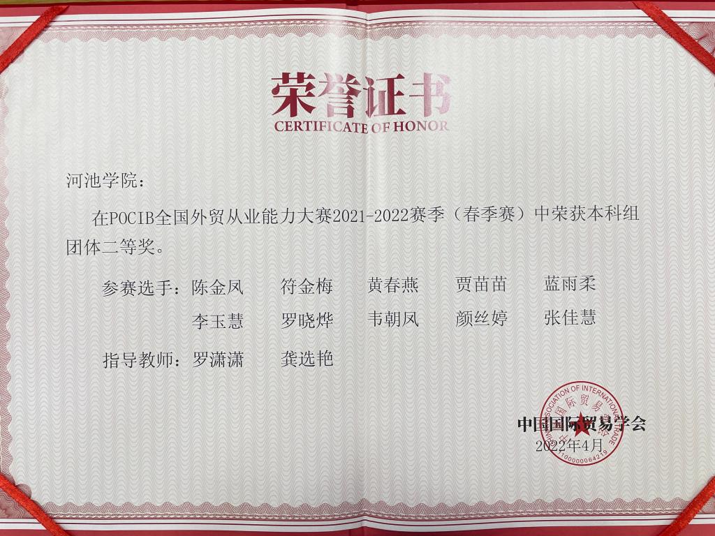 (学生团队在2022年POCIB全国外贸从业能力大赛获奖)
